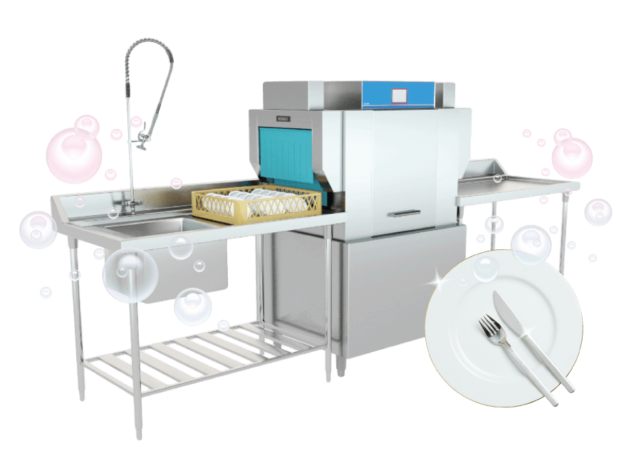 Smallest rack-type conveyor dishwashers in the market offer superior cleaning at a low cost and minimum space requirements. Extremely low water consumption and unique noodle spray system greatly reduce operating costs.